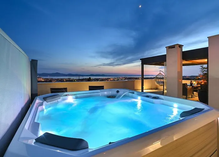 Appartement Jacuzzi Panorama à Zadar spacieux est situé à moins de 2 km de l'église de Saint-Chrysogone et à moins de 2,1 km du Musée des illusions. Le domicile de 150 m² dispose également d'une terrasse surplombant la mer.